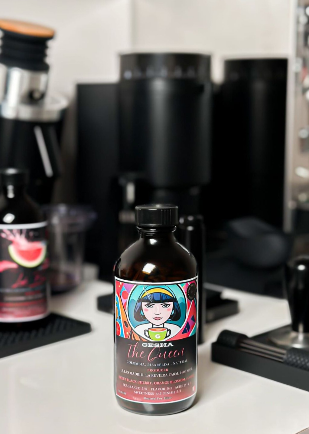 This Natural processed Gesha is celebrated for its rich & intense flavor. Enhanced sweetness and complexity, with dominant notes of sweet black cherry providing a deep luscious fruitiness. Complimented by the delicate aroma of orange blossom and a very distinct floral undertone, creating a harmonious and vibrant cup.